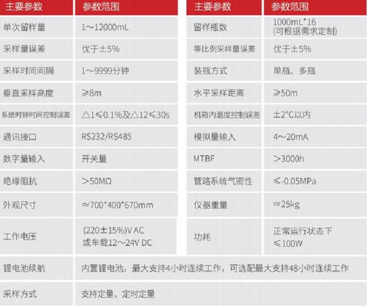 采样量误差:优于±5%