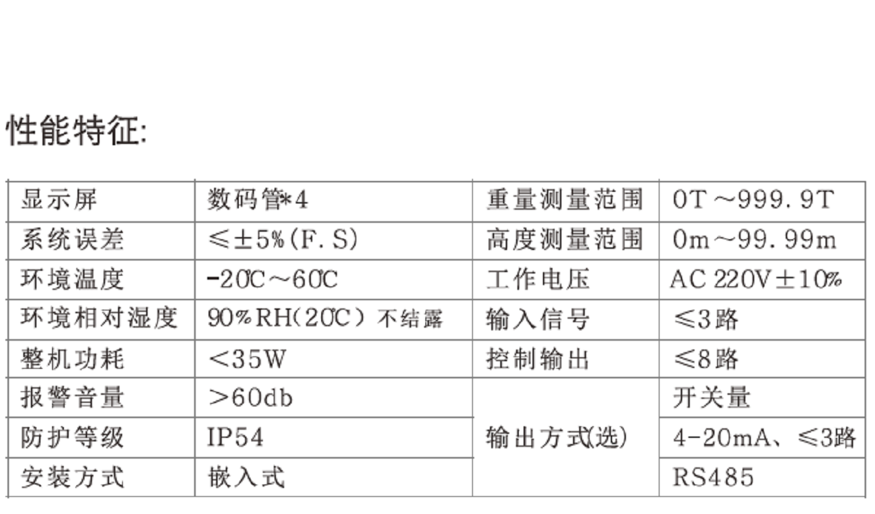 (8) 荷重 4~20 毫安输出:4 毫安对应 0 T、20 毫安对应 5.5T。(可修改)