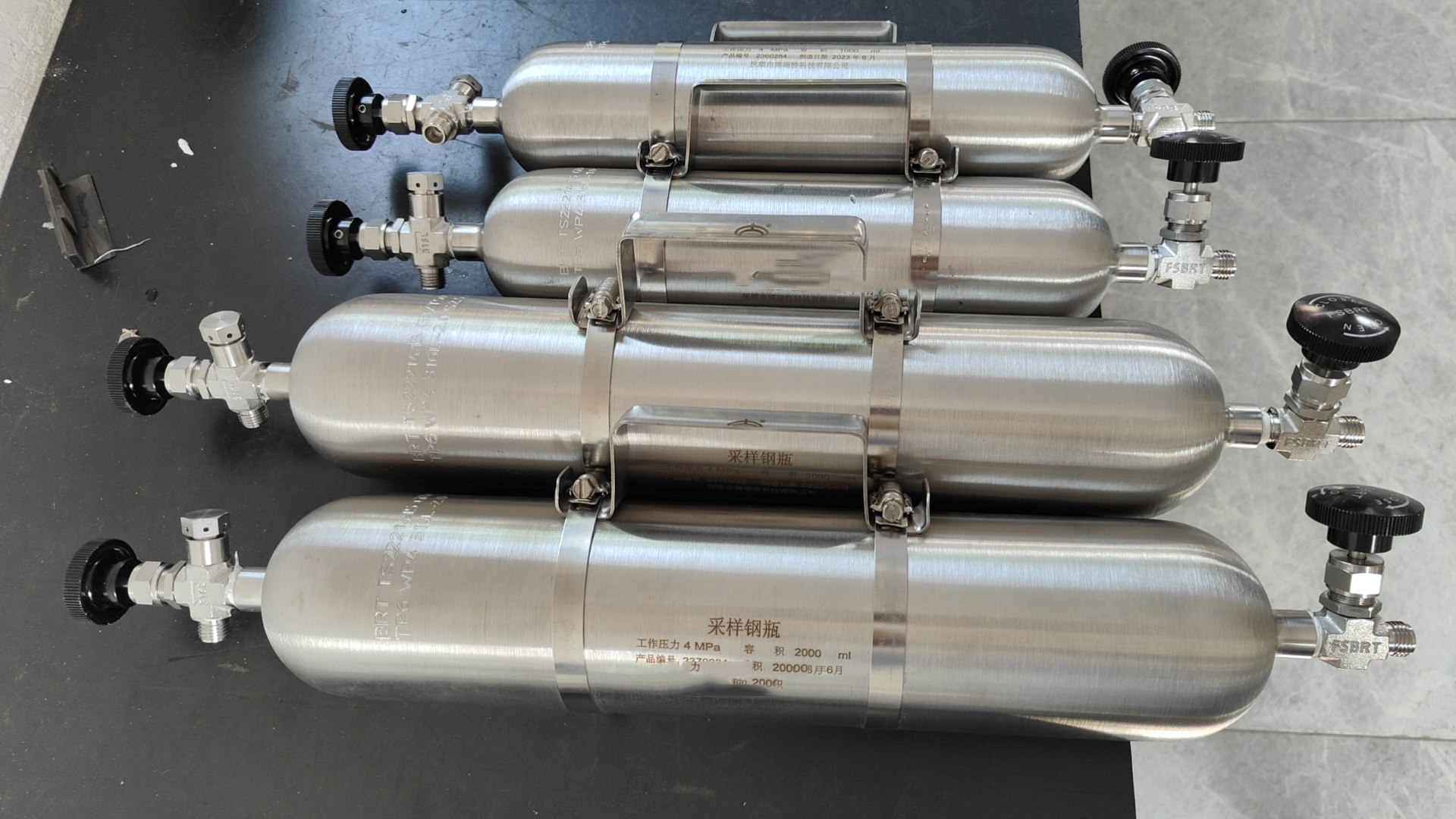 2000ml 工作压4MPA 钝化涂层(内衬PTFE) 1/4卡套的螺纹 内涂四氟钢瓶带阀