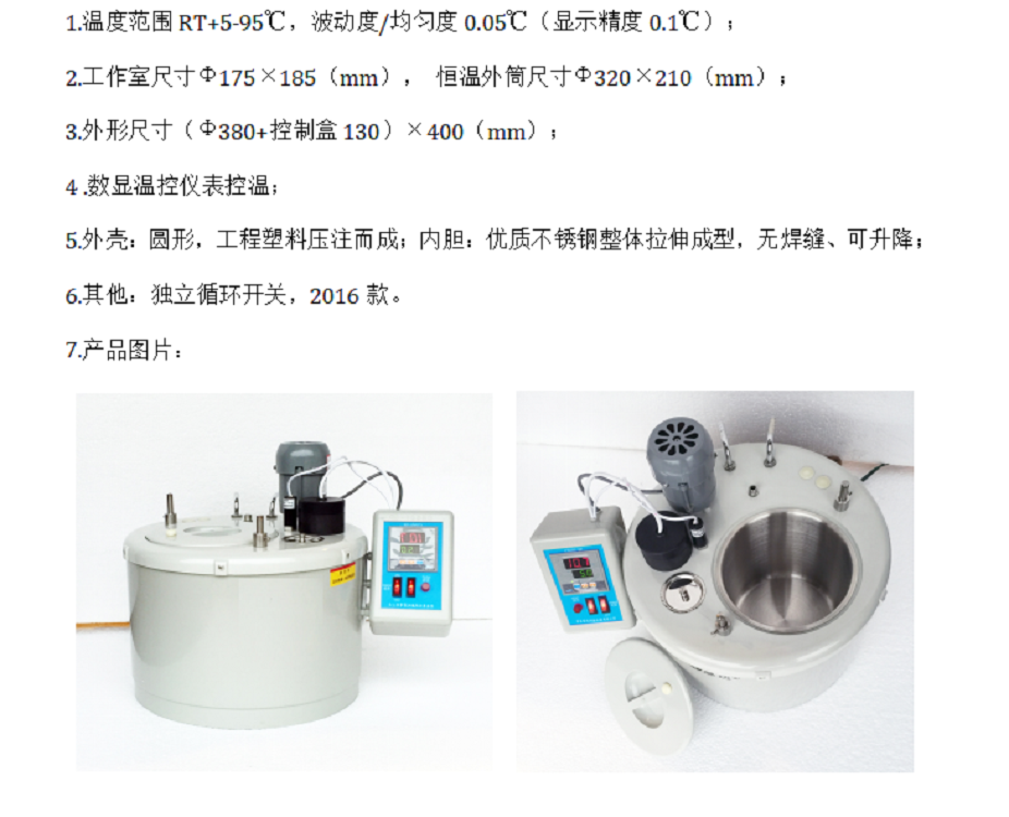 仪器分为内、外两个工作场,外工作场能单独进行试验。仪器运用“HDP.RO”冷热动量循环技术,贴合现代试验安、、、节能的要求。2016款新增循环功能控制开关,搅拌与电源进程控制,加人性化。