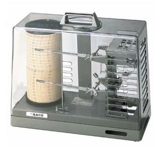 记录纸上自动绘出存放空间的温度及湿度变化曲线,记录周期可自 行 1 日,7 日或 32 日,适用于半导体制造厂,环境实验室,化 学品仓库,电脑房等的温湿度记录。