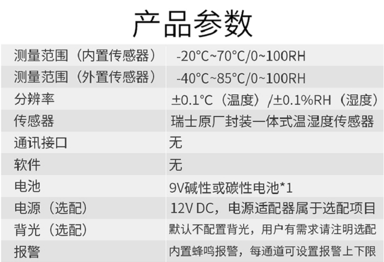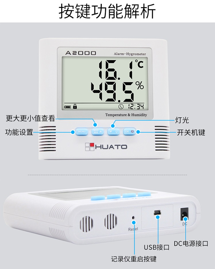 A2000高带报温湿度表是农业研究、食品、医药、化工、气象、、电子、实验室等领域对多项气候参数,进行监测的仪器。市面上普通温湿度计,温湿度表与本产品相比较,在性,度等方面差距非常悬殊。 A2000温湿度表是华图公司汲取国外同类产品优点并结合我国特点设计,可对温湿度及其它气候参数进行记录。采用高瑞士一体式温湿度数字式传感器,将采样显示在液晶屏上。温湿度表仪采用高能量锂电池供电,可选配外部电源,体积小巧便于携带,整机功耗非常小。A2000温湿度表内置背景光源,方便用户在光线不佳的场所使用。内置蜂鸣报器,声音响亮,过设置的上限即会报。