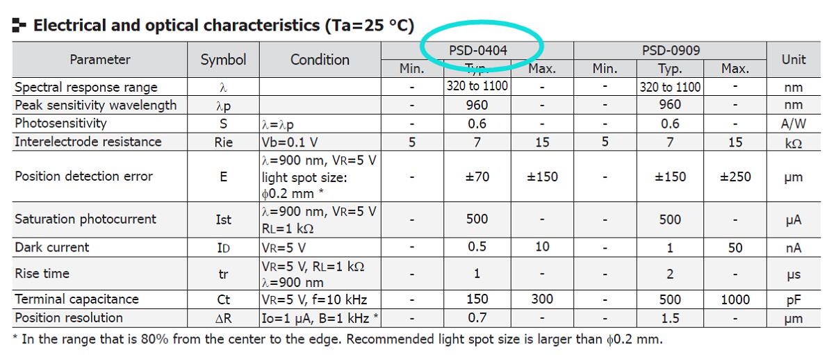 二维位置传感器PSD,靶面尺寸4mm,位置分辨率0.1微米