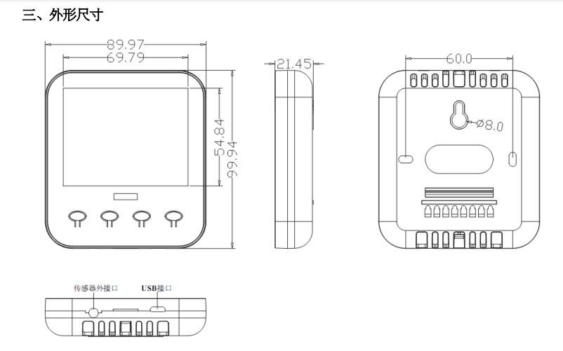 9、灵敏度衰减值:温度<0.1℃;湿度<0.1%RH
