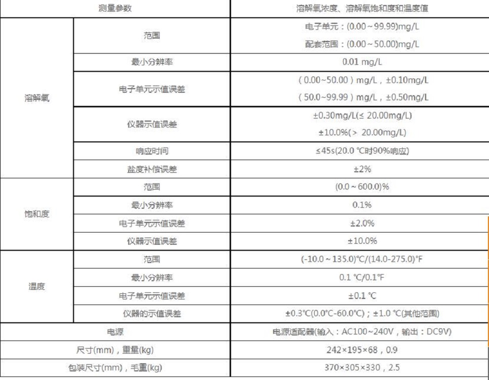 溶解氧浓度、溶解氧饱和度和温度值