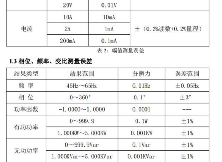 频 率 45Hz~65Hz 0.01Hz ±0.05Hz