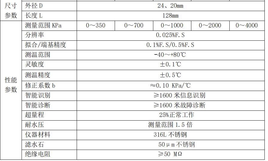 测量范围 KPa 0~350 0~700 0~1000 0~2000 0~4000