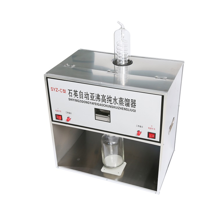 产品介绍 石英亚沸高纯水蒸馏器选用石英玻璃制成,蒸馏水不与任何金属接触。的亚沸水纯度高,可以满足各种特殊分析用水,用于各大中院校、科研单位、实验室制备高纯度分析用水。 产品参数 加热功率:3KW 出水量:2500ml/h 外型尺寸:50*35*48cm