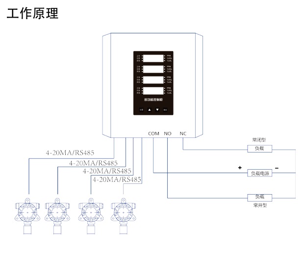 适用探测器:4~20mA输出或RS485输出的气体探测器