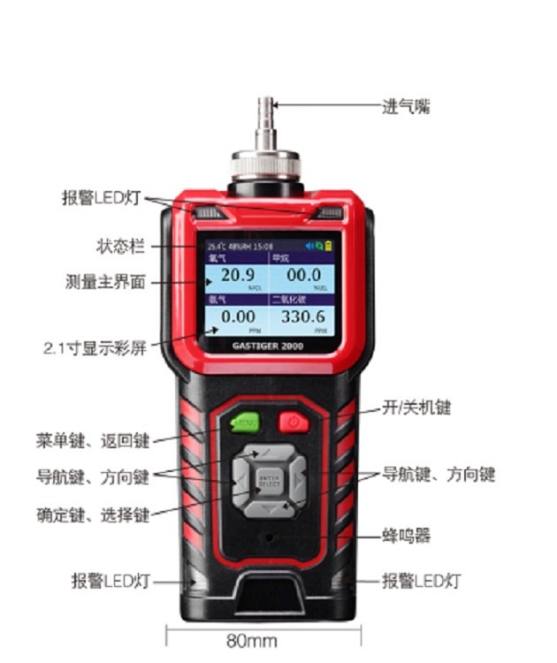 采样方式 主动泵吸式,内置气泵可打开或关闭,气泵流量500毫升/分钟