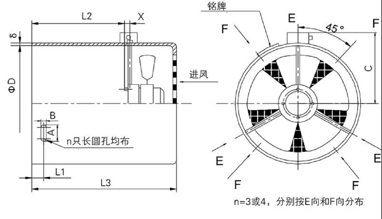 风机应接电源,不能使用变频电源。风机通电后应检查旋转方向是否与标识转向一致。风机为纸箱包装,运输过程中应小心轻放,避免碰撞和敲击,严禁与等腐蚀性物质一起运输。风机应存放在环境温度为-10℃~+35℃、相对湿度≤70%、清洁且通风良好的库房内,空气中不能含有腐蚀性气体。