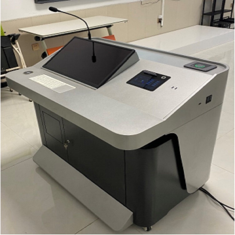 3、讲台高度电动升降调节。采用德国升降技术,结构稳定。台面高度850mm-1220mm动态可调,本地液晶面板和远程物联网多种控制方式,设置讲台高度并实时获取讲台当前高度。