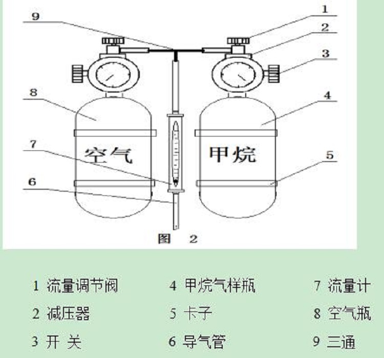 在正式对传感器校验前先从皮盒正上方的小天窗中取出导气管6 与被检传感器连接。 首先对传感器进行“校零”,缓慢打开空气瓶开关。调整流量调节阀,流量分别为0.2L/min,0.5L/min进行空气“校零”,3min为一次测试。直接“校零”为准。然后对传感器进行“标定”。用同“校零”的方法打开气样瓶开关,调整流量,流量值同上,“标定”结束后关闭气样瓶开关。