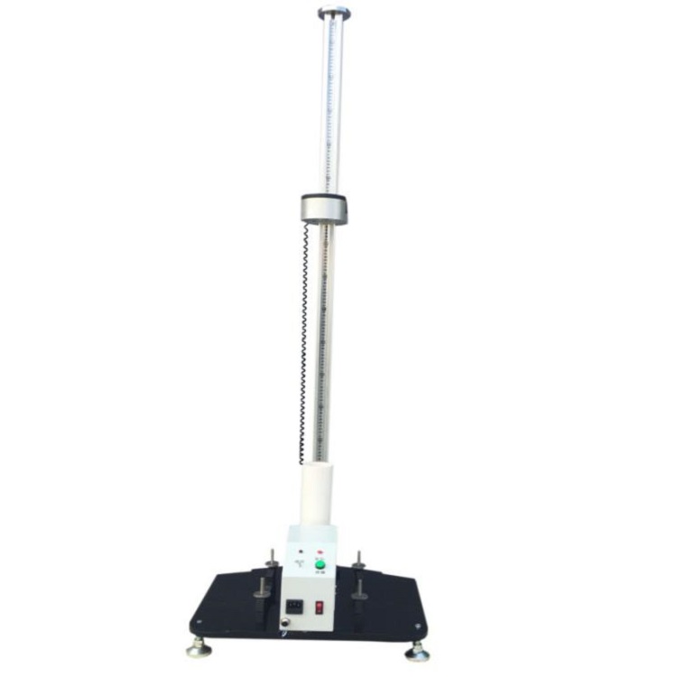 该机采用手动提升落球,在立柱上标有提升高度刻度线,具有防止二次冲击结构,操作简单,夹持试样快捷。