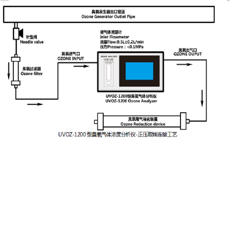 检测原理:紫外光双光路吸收法,用于臭氧发生器出口浓度实时检测或尾气臭氧浓度检测。