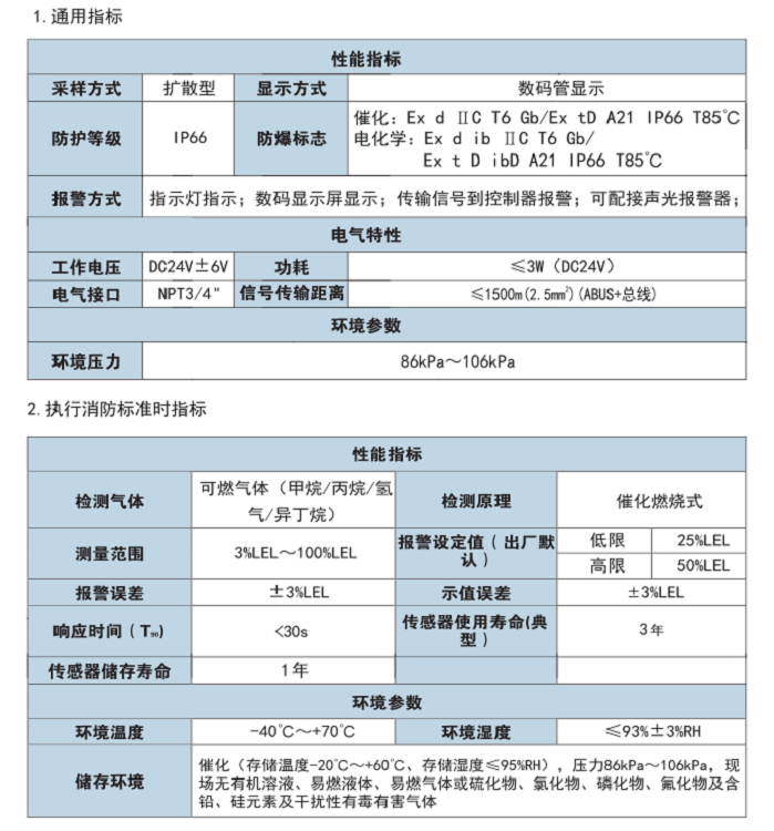 检测气体:可燃气体及蒸气(见气体检测列表A01)